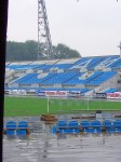 Dinamo’s stadium was a classic Eastern European ground. Completely open to the elements with massive dominating floodlights, it is hard for any fans to generate an atmosphere, especially as the rain was falling heavily. With a crowd of less than 2,000 on a hot, rainy night the empty blue and white seats made picking out some of the blue and white shirted teams hard on occasions. CSKA scored two early goals which effectively killed the game off and ensured they would stay top of the league irrespective of other results. I scanned the crowd looking for Dennis but couldn’t see a six foot big English looking bloke anywhere in the crowd, especially as he had as much hair as most of the CSKA “fans” who had populated the stand behind the goal.
