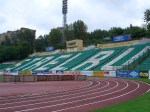 I finished off my very entertaining weekend with a brief trip down to Avtozavodskaya to visit the Strelstov Stadium, home of FC Moscow. Despite being just one stop south of the hotel on the metro, the walk took around 20 minutes along some very pleasant tree lined streets. The stadium sat down in a valley, and you enter the ground via a public park. The stadium was open so I had a wander in. It was basically an athletics track with a couple of temporary stands, although the traditional ceremonial stand dated back to the 1920’s. It was almost a spitting image of Brighton’s Withdean stadium, although the open air nature would not have made it very pleasant for supporters. The views from the top row was impressive though with the city skyline silhoutted in the distance. FC Moscow had only existed for 2 years, having been created after the Torpedo club had been taken over and moved to the Luzhniki Stadium. Whilst money was tight, and the support base was small, they had held their own in the top division, and saw both Torpedo and Dinamo struggle whilst they had gained some stability. They reached their first cup final in 2007, although they lost 1-0 to Lokomotiv in the Luzhniki.