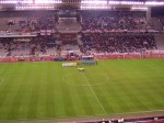 The stadium is far from ideal for football, with the stands set quite along way back from the action. The lack of a roof on three of the four sides also means that the atmosphere is easily lost. For normal league games the upper tiers of the Lateral and Tribuna only tend to be opened. This means that if inclement weather is forecast, demand for the seats in the covered Tribuna rises significantly. The views from all stands are unobstructed – if the weather is good then head for the upper lateral which offers a fantastic backdrop over the west of the city.