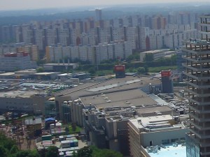The bus took us around the airport commercial centre, a place that would do the likes of Bluewater and Lakeside proud – an Ikea, M&S, Nike, Next and a host of other big name shops lined the streets – contrasted by the huge industrial manufacturing chimneys in the background. Then I noticed something….Whilst the place was busy with Saturday morning shoppers, no-one appeared to be carrying any bags – so is it that people come here to window shop before trudging back to their gloomy industrial tower blocks, or do they save it all up for a power spending spree later in the day.