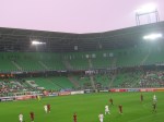 The crowds weren’t exactly flocking to the stadium, and those that had made the effort to attend (it should be stated in the defence of the organisers that tickets were only €10) were in the colours of the Dutch and not of Portugal or Belgium. Inside the stadium the immediate thing you had to say it was very green. Every seat, surface, wall and roof was in the same green. Not exactly pleasing to the eye, and where they thought of the name the Green Monster was completely beyond me.