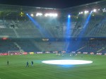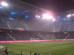 Views are excellent from any part of the stadium. Whilst the Arena doesn’t have the scenic surroundings of the Tivoli stadium in Innsbruck, it is much more pleasant that some of the stadiums we have in this country. The stadium has some really unique features such as concession stands that serve fans both inside and outside the stadium from the same points, two huge screens and one of the loudest sound systems in Austria. It also has a lighting system that wouldn’t look out of place at a disco. Inside the stadium the concourses are wide and spacious, allowing fans a view of the action whilst they queue. Access to the upper tiers of the stadium is via the staffolding towers dotted around the stadium. Like the stadium in Klagenfurt, only three sides have two tiers, with the main West Stand having a row of Executive seating instead Come June 2008 the whole area will have been completely transformed into a true football festival.