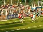 So trip one saw us landing in the middle of the countryside around Gothenburg on a scorching hot day on Wednesday afternoon. Having taken this very journey last year with Lolly, I knew what to expect on arrival in the city centre. Our plan was to walk down to the hotel, drop our bags, head off to the theme park before taking in a Swedish Superettan (2nd Division) game at the Valhalla Stadium – home to Gothenburg’s 3rd team – Orgryte. We walked down passed the building site of the Gamla Stan – the new stadium that will be home to IFK Goteborg and GAIS when it is complete in December 2009. The Ullevi stadium, still the biggest ground in the country and the preferred home of the national team is across the road from the new stadium and plans are still being drawn up for the future of the ground. At the moment with two clubs sharing the ground it is used on a regular basis, although crowds are far from impressive. The new stadium, with a capacity of just under 20,000 will be a much more intimate venue for football in the city, although it is undecided whether Orgryte will also move in.