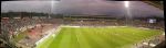 The stadium has the feeling of being built by an over enthusiastic child from his mechano set at Christmas. Four covered stands have been pieced rather than built, and two corners temporary structures had added to the capacity. However, for what it lacked in aesthetic appeal it was compensated for by the sheer noise and passion of the home fans.