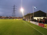 After the break Ebbsfleet pushed forward to try and get a second and somehow Michael Gash managed to hit the ball straight at the goalkeeper from three yards out in a chance that would have been easier to convert than miss. After Rushen failed to take a few half chances the game exploded in the 83rd minute when Rushden fullback Simon Downer delivered a very late and high challenge on Ebbsfleet’s Simon Moore just in front of the benches. Chaos ensued as the coaches, substitutes and one of the mascots piled onto the pitch to join in. Stweards ran (well waddled) from both ends to try and restore order and it was clear that the referee had completely lost control. He retreated to the centre circle with both linesmen and the fourth official before marching back over to the touchline and sent both coaches plus a couple of substitutes to the stand. Great idea, but as I have already mentioned the Main Stand has all of 7 rows meaning these sinners ended up sitting some 10 yards from where they were previous. Downer was of course red carded in the mayhem and can have no complaints.