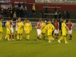 You got the impression when the two teams emerged onto the pitch that Rushden weren’t popular. Whether that was because of the past histrionix between the two teams or the simple fact that the way they reached the Football League last time went against all that non-League teams stand for. What was noticable though was that for a club that regularly had crowds of 5,000 plus a few years ago they had brought just 127 fans (I counted them twice to make sure – once in each half). Where had all the fans gone? Football in the south eastern midlands has hardly had a good time in the past few years and it was now a hot bed of Conference rivalries with Kettering, Cambridge and Histon playing local derbies against Diamonds.
