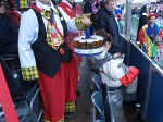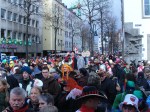 Anyone who knows me knows that I do not do wacky. I abhore any event that draws attention to myself in any way apart from a professional light. So anyone walking into the offices of a certain German software company at 9.30am on Monday 23rd February would not believe what they say. Mr Stuart Fuller dressed as a clown, complete with clown make up and a big bowtie. I did however have my second Kölsch beer of the day that was a sweetner to this enforced embarrassment. We had reserved seats at the carnival and arrived there just before midday. The streets were full of every conceivable fancy dress, and it was very good to see the young ladies of the city had really made an effort, and the almost artic conditions meant nothing to them based on the amount of flesh on display. Every few minutes a small glass of Kölsch would appear in my hand, a toast would go up and another beer would slip smoothly down. The parade started at one pm with a marching band and a float, on which middle aged men threw chocolate down on the crowd….Fast forward four fours and the last float drifted past, with a brass band and a middle age man throwing chocolate down – a bit of variation wouldn’t go a miss.