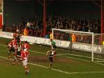 Luton started the second half with purpose and although Dean Brill in goal had the fans hearts in his mouth a few times with his handling the final score was never in doubt. Luton simply wanted the game more than Morecambe. Craddock became more influential and should have scored a couple himself, but it was left to veteran striker Kevin Gallen to score the winner after the Morecambe defence had stopped to appeal for an offside flag. The fans, many in their Eric Morecambe coats, wigs and glasses went wild and some jumped the advertising hordings, but sensible policing saw that this was not taken any further and calm was restored.
