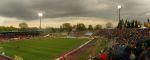 So after a hard days slog in our luxurious Munich office I headed to Augbsurg, just forty minutes away by train from Munich. I am still puzzled by these 6pm Friday night games – surely people have jobs to do? Even if it is for a TV audience who is home from work in time to watch the games? However, every game I have been to at this time has been well supported, and this one was no exception. I still had little idea where the stadium was in relation to the main station so on exiting the train I simply followed the crowds of scarf wearing fans onto a bus and less than ten minutes later I was outside the stadium with my ticket in hand. You can see why the team are planning on moving to a new stadium. The Rosenau is built in a natural bowl and as I entered the ground I was at the back of the open air bank of terracing, which was full in places. The main “bank” curved up steeply and had a section of seating sandwiched between terraces. The seats were hardly luxurious – simple bucket seats bolted onto the terrace steps, but the views were good simply because the terrace was so steep. After a customary beer (or three) and sausage (or four)I took my seat on the terrace just in time for the start of the game.
