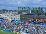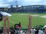 The West Indies won what I thought would be an important toss and put in the South Africans but this turned out to be a poor decision as the pace of the outfield saw the South Africans race to over 100 in the first eleven overs as Smith, Kallis and Gibbs made light work of the West Indies attack, peppering the boundary with the ball. Gibbs’s 55 from just 41 balls was a real joy to watch as he really went to town on Bravo and Simmons. We also saw the first “dance off” wars with the cheerleaders in front of eastern stands being booed when the male dancers got up and wild cheers when the not so unattractive females strutted their stuff.