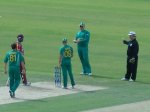 So 183-7 was a decent score, but would it be enough with the big hitting of Chris Gayle to come on a very fast pitch? Well the reply didn’t start well as out of form Fletcher only lasting 5 balls for another duck and Gayle shortly following him, scoring just 5. But this did bring two batsmen to the crease who have built big reputations – Dwayne Bravo and Lendl Simmons who managed to put on fifty in a short period before Bravo was caught on the boundary for 17 after moving the run rate onto over 8. Simmons took up the mantle and continued to push the rate upwards, reaching his fifty off 31 balls. He was finally out for 77 (off just 50 balls) hitting to the boundary, and with 51 runs needed from just 4 overs it seemed a lost cause for the West Indies. With wickets tumbling quickly after that we saw one of the most bizarre incidents in the tournament so far. Kieron Pollard was facing Parnell and appeared to dolly one up to Smith. South Africa celebrated by Pollard was unmoved. The umpires were confused and after a huddle called for a TV decision. The big screens clearly showed it wasn’t a bump ball and it was a wicket. The TV umpire returned a verdict of “Not Out” to everyone’s amazement – including the umpires who changed their minds and gave him out! Parnell followed this up by removing Jerome Taylor’s stump with the next ball to give him figures of 4 for 9 off 3 overs – possibly the best spell of bowling in the tournament so far.