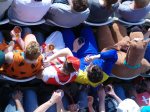 And that was the highpoint from a New Zealand point of view. Wickets fell every couple of overs but that does not tell the real story. Step forward Umar Gul. Second change bowler but in a devastating spell of 18 balls he took five wickets for just six runs – a Twenty20 record. Danny and I watched this remarkable performance unfold from our own executive balcony with a couple of beers. Amazingly these boxes were left empty so we grabbed a couple of cold ones, and sat in our own private world. Oh how CMF would have liked to have been here and ticked off another “thing” from her list (not with Danny there of course!). Our dancer friend from last week (the one with the label – see here for more details)was really wowing the crowd with her new moves, splits, cartwheels and some very very interesting positions that the crowd and fielders alike enjoyed. OK – so I have changed my mind about their role in the game but only if she dances!