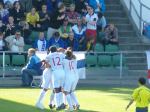 Back to the game, which is a shame as it was spoiling a lovely sunny evening. Thirty minutes gone and a long punt upfield caused Mancienne to dither and Berat Dadik nipped in and as he pulled back the trigger, Mancienne tripped him – Penalty and Red Card – no question…Up stepped captain Tim Sparv and it was 1-1. The Finns went wild, none more so than the goalscorer who disappeared into the fans behind the goal and it took four stewards to get him back!