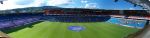 But I was not here for this stadium, but for a visit to the Ullevaal, the Norwegian National Stadium and home to both Lyn Oslo and Vålerenga IF. There has been a stadium on this site since 1926 when the then Crown Prince officially opened the stadium and watched a Lyn XI beat Sweden’s Orgryte 5-1. Amazingly the highest ever official attendance was not for football or some strange Alpine sport but when the American Preacher Billy Graham came to town in 1955 when 40,000 believers (?) crammed in. The stadium today has gone through numerous face lifts and is very smart with a double tier horseshoe and a smaller stand at the west end. Lower tier seats are in blue with the upper tier in a smart red. The views from the upper tier are very impressive and certainly underline the green-ness of the city.