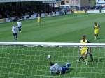 Welling deserved their win. Charlie Mitten in goal made some excellent saves, looking a very confident keeper and in midfield Sanchez Ming (brilliant name – should be half Mexican/half Chinese but wasn’t!) was busy and scored the opening goal, taking his chance with confidence after ex-Southend keeper Simon Royce could only parry a shot into his path. Their second, with five minutes to go came from an excellent run by Jake Hobbs who outpaced the defence and slotted home from a tight angle.