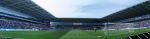 The stadium is rather disappointingly similar in design inside to most new builds in the UK with three single tier stadiums and one two tier main stand with a uniform roof. Views are excellent from all seats and the home fans are now located in the North (Canton) Stand.