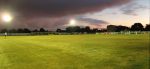 Dan had been keen on the idea of a Friday night game, with his girlfriend doing damage to his credit card in New York he was footloose and fancy free, although he rarely needs an excuse for a game. Lolly was also allowed to come, having helped out with the concrete smashing on the old drive during the day (some children want sweets or toys as a treat, Lolly wants to go to football – what a difficult child!). a short hop, skip and a jump around the North Circular to EN3 saw us at the once home of David Beckham (he played here when he was in his early teens) as cup fever swept North London. OK – the 70-odd other fans seemed pretty excited, even if most were related to the players in some way. The game had been moved to the Friday night to on Police advice as both Enfield Town and Enfield 1893 were due to play on the Saturday (OK – not strictly true but Enfield Town actually share Brimsdown’s ground!) which suited us fine. What didn’t suit us fine was the localised thunderstorm that only seemed to be affecting EN3. Thanks to my brand new SatNav, which for some reason likes to occasionally try and direct you across a railway line using a foot bridge, or to turn right across a dual carriageway with a central reservation we got there eventually, but the weather was a tad of a concern.