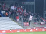 So after my warm welcome from the club and being escorted to the press area with a steaming cup of coffee to keep me warm I watched as OB awarded their Player of the Month to Eric Djemba-Djemba. Yep another ex-Moan Utd cast off and possibly one of the strangest transfers that Ferguson has made (Kleberson, Prunier, Taibi and Veron I would suggest would complete the worst 5) is having the season of his life out here. Sitting alongside him in midfield was Peter Utaka, brother of Portsmouth’s Johnny and a prolific scorer in the Belgian leagues (51 goals in 102 games) before coming to Denmark where he had scored 24 times in 44 games for OB. And no surprises that he opened the scoring in this game in the 35th minute when he powered past the AaB defenders into the penalty area and shot low into the net. Yep, 35th minute and that is the first thing I had to write. Apart from a block by Espen Ruud’s bum in the OB penalty area early on it wasn’t a first half of high quality. The OB fans high up in the Stiften Tribunen made a noise throughout and welcomed the goal as an opportunity to start a little bonfire, sorry flare, in the stand to keep warm.