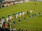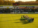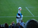 But that was just an Entree. The main dish was in Herfolge and apart from the whole FCK away contingent trying to squeeze on a two coach train at Køge it was a smooth thirty minute journey. The club had misplaced my press accreditation which wasn’t too surprising as this was billed as the biggest game in their history and things were a bit chaotic. The press area for once was behind glass, and with the sun beating down I was forced to shed three or four layers of my artic ensemble. cyril the Swan (on loan from Swansea?) kept the crowd amused prior to kick off and a good old fashion ticker tape welcome signalled the start of the game, live on Danish TV.