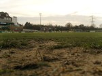 The bar was taken over by a sizeable Lewes away support, happy to put some cash behind the Thurrock bar. Sadly the Thurrock Hotel was closed for Christmas and thus those who fancied making a night of it next to the M25 were thwarted. We purchased our Golden Goal tickets and headed out onto the terrace. It is a strange ground, with the Hotel a looming shadow over the single tiny stand like a Essex Bates Motel. Behind the goal was the dressing rooms, caged in to stop fans committing the heinous crime of walking in front of it.