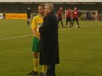 After Thurrock’s David Bryant had collected his award for “Player with the most similar name to the only bowls player known to the general public”, the game kicked off as the temperature started to fall. The first half was an open affair, made more interesting by the play acting of the biggest man on the pitch, Thurrock’s Robert Swaine who fell down on a couple of occasions. On the last one he received lengthy treatment, accompanied by a single man rant, aka Cynical Dave, which went along the lines of “Cheat, Cheat, Cheat…” for a full 3 minutes. Impressive stuff.