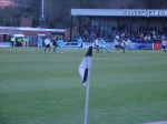 Back in the bar it was tempting to stay for the darts with the temperature falling below zero. Lolly was even regreting not going with CMF to the shops it got that cold. With twenty minutes to go Lewes at last produced their first chance of the game when Keehan’s shot is well saved by Dover keeper Hook. At this point I had wandered into the corner to take some pictures. Four young Dover fans decided to abuse me at the highest level – “Oh mate…Lewes are shit…how did you score 6 against us last week.” I stood up, thought about it and then explained what the net was, what a goal was and repeated it six times. They thought about it in their tiny heads before one of them said, “Yeah but you wont score six today”..brilliant wit.