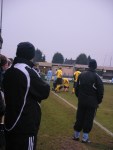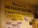 Forty five minutes were up so we started wandering down to the bar for a well earnt pint. As we walked behind the dugout there was a muted cheer and it appeared we had missed Burscough’s equaliser. So I cannot tell you a think about that one. But I can tell you that Talk of the Town, Hucknall’s well appointed bar, is in fact Hucknall’s premier night spot. The bar could have been used as a double Sir Steve Redgrave suite in Phoenix Nights, but it served our purpose well. Pint of Strongbow for Northern Steve and a pint of Mild for me – in fact my first ever pint of Mild. And it went down a treat. So much so we delayed our re-entrance until the 47th minute. And what did we find? 2-2…2 bloody 2. Two goals in the first minute of the second half. One of the Hucknall fans told us that Adrian Hawes had put Hucknall ahead and then “some bloke equalised for your lot from kick off”…Good to see us blend in then!