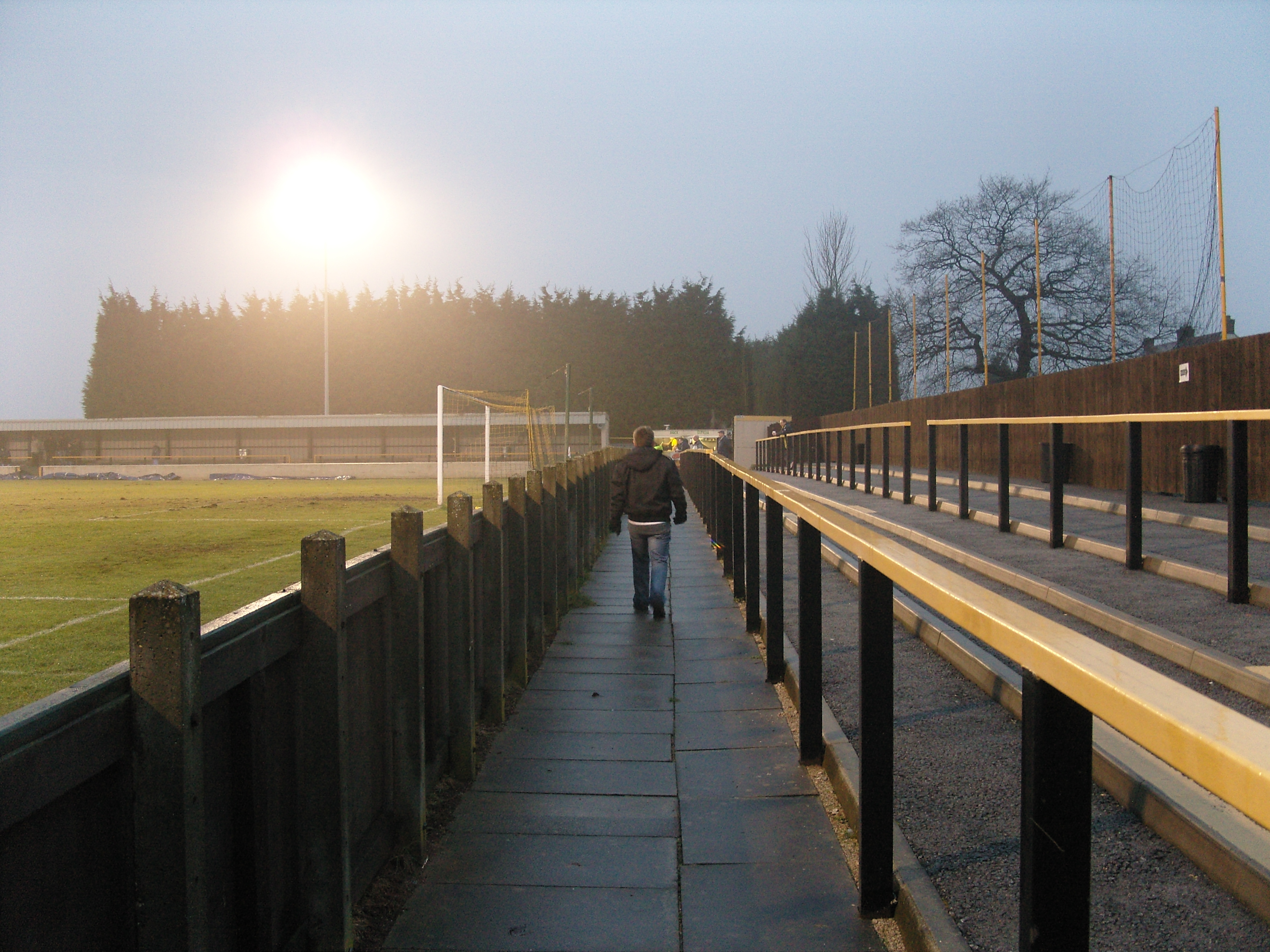 At the south end of the ground you will also find the bar, which doubles up as the night spot – Talk of the Town, which is open to all fans before, during and after the game. The east side of the ground is neither a stand or a terrace but rather a wide walkway. Here you will find the club shop and first aid room in one of the portakabins and a strange double decker structure that appears to be the control room.