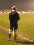 We took our place next to the away dugout and listened to the dulcit Scouse tones from the visitors bench. They were keen on “squeezing” which didn’t seem to mean anything, and they were in the linesman’s face as soon as any tackle went in. They weren’t happy with one particular challenge that went unpunished – “Linesman, your mate (the referee I assume) is as bent as Dale Winton” was the pick of the remarks. Apparently there is a rule that says only 1 person from the bench can stand in the technical area at a time. Burscough’s coach stood leaning against the dugout, and was told every minute or so by the linesman to sit down – “Calm down son” was the standard response. Of course at this level there is no Fourth Official to police the area.