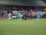 But could the home team fair any better? Well in terms of points on the board, yes. Thirty two of them in fact from thirty games, some six above the drop zone but the concern at Church Road was for the amount of goals they are shipping in. A 6-1 home defeat to Rushden & Diamonds had come only a few weeks after a 5-0 reverse to AFC Wimbledon. Watching Hayes and Yeading certainly meant goals. Fifty of them in fact at Church Road in just fifteen games this season. And goals is what we pay our money to watch. Although there hadn’t been alot of money coming through the turnstiles. After promotion last season from the Blue Square South, where they surprised many by sneaking into the end of season play offs and then upsetting the form book by beating Alan Devonshire’s Hampton & Richmond Borough at the Beveree to boot, the crowds had been conspicuous by their absence at Church Road. Just 291 had been present for the recent game with Forest Green Rovers, which surely meant the club was losing money? It is hard to fathom why the locals were staying away, but perhaps the birth of the “super club” had not gone down too well?