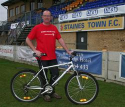 A group of around 15 Staines Town supporters along with First Team players Andre Scarlett and Mazin Ahmad and a support crew will be taking part in The London Football Ground Cycle Ride on Sunday 6th June. The sponsored cycle will raise money for lots of different charities and will visit eleven of the Capital’s soccer stadiums.