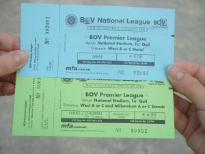 It was still a surreal experience. Apart from the small areas of fans in our stand the ground was completely empty. With huge vacant areas around the pitch it hardly made the game a good spectacle so we concentrated on the cold Cisk beers and comparing the fans around us with people we knew, as well as trying to fix Jo up. She is so picky – not one of the fat, middle age Maltese men I suggested was good enough for her. Beggers can’t be choosers I told her, but she made some smart quip about breasts, short skirts and stockings that I had to agree with.
