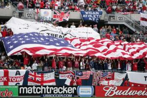 CHICAGO – MAY 28: Fans of the United States unfurl a large flag before the USA v England friendly on May 28, 2005 at Soldier Field in Chicago, Illinois. (Photo by Jonathan Daniel/Getty Images)
