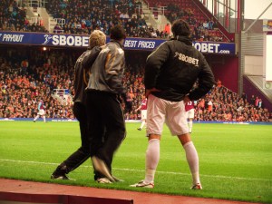 In their letter to West Ham fans at the end of last season, David Sullivan and David Gold assured us: “We want to bring the fun back. We want you to be excited on a matchday, and not just about the style of football. We are looking at ways to improve our pre-match and half-time entertainment.” So what did we have to lift the gloom today? An advert on the big screens for the highlights DVD from last season (i.e Scott Parker’s goal v Wigan repeated from every conceivable angle) and an interview with “Mad Dog” Martin Allen. Hmm hardly groundbreaking or inspiring.