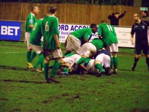 We had a fight on our hands and the game bubbled under for the rest of the half, one tackle away from a mass brawl at times. However, it was Lewes who seemed to have the energy and after Hampton had again illegally stopped a Lewes assault on goal. After a yellow card was issued the ball was played deep into the Hampton box by Rory Hill. Gary Noel tried an overhead kick that hit a defender and the ball flew out of the area until Grant Hall jumped and executed the perfect overhead kick. The ball flew into the corner and to say the place went wild was an understatement. Players, substitutes and the manager ran onto the pitch to jump on Hall. The referee simply didn’t know what to do. But we did. We cheered, clapped, screamed and basically let out 6 months worth of emotion.
