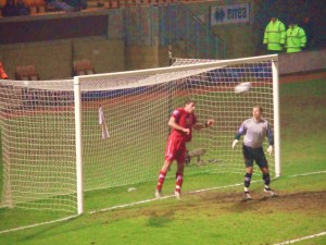 Oh, I forgot to mention that one the way I heard a cringeworthy advert on the radio on the way up. “A right old cockney knees up” can be had by all on Monday night at Upton Park for the game versus Burnley. For ONLY £49 you get a pie and mash supper, a pint, a programme, a padded seat and “much much more”…well based on the fact a ticket is £15, a programme £3.50, a pint the same and pie and mash is lets say a £5 it must be more than £23 worth of “much more”. Desperate measures from an increasingly desperate club. Back to the Blue Square Bet Premier…