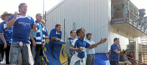Henry did receive a little bit more attention than Grist, despite the Port Talbot left-back hardly being an inconspicuous figure wearing his club tracksuit and carrying an oversized kitbag. Grist was soon the target of some alcohol-fuelled praise however as the fans boarded for Stebonheath and to witness their sides first win since January. A pub-crawl from the train station to the ground ensured that the visiting fans arrived in good voice and also significantly boosted awareness of their football club to the people of Llanelli, many of which had struggled to even offer directions to Stebonheath.