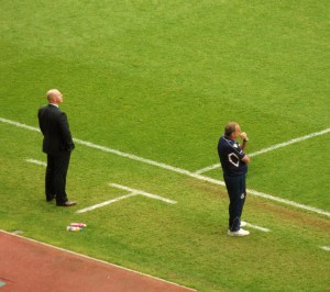 The Hammers first half display showed exactly why they are bottom of the league. Despite having the majority of possession, far too often long cross field balls just sailed over the players heads and into the crowd. Grant stood on impassively as if everything was going according to plan.