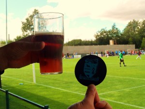 We adjourned to the bar whilst Danny went shopping. He went to the club shed/tea bar and bought the last (ever apparently) cork-backed St Neots beer mat. He felt guilty in the first half that his beer glass would make a nasty ring on the terrace crash barrier so he wanted to help.