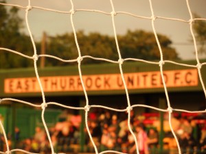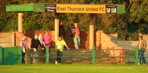 Half time saw the usual raft of substitutes and with the daylight fading neither team could really take a hold on the game. With the ground bathed in the last bit of sunshine (yes, in this great British Summer I have at last been able to use that world) I took stock of the surroundings. Rookery Hill is an odd ground. Behind one goal are two of the smallest piece of covered terracing I have ever seen. Stands that I would have made in five minutes in my Lego world (see my article for In Bed With Maradona on the subject). One side of the ground has a strange double decker portakabin situation going on, and the dressing rooms were in what could be described by my generation in a “Scout Hut”. But it is a welcome home to Grays, who would have been in a whole world of trouble if East Thurrock wouldn’t have thrown open their doors to help them last season.
