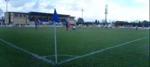 I stepped in Wheatsheaf Park expecting a few hundred in the ground due to the inclement weather, however to my surprise the ground was abuzz with many young kids getting their 1st taste of live football, seasoned ‘Swans’ fans, families and the expected crazy old guy who has supported them since year dot. The ground itself is very nice indeed, 300 covered seats, 800 covered terrace and plenty of space to stand behind the goal and sidelines, it could easily hold 3000. In fact their biggest crowd was set in 2007 against Stockport County in the 1st round of FA Cup, standing at 2862. Their average attendance last season was around 2-300 people, in fact their commercial manager recently made this plea to stay away fans: ‘We have one of the best grounds in the league, where families can come and enjoy a game of football without subjecting their kids to bad language or behavior that often occurs at a higher level.’ Having seen the game, I can tell you there was its fair share of fruity language.