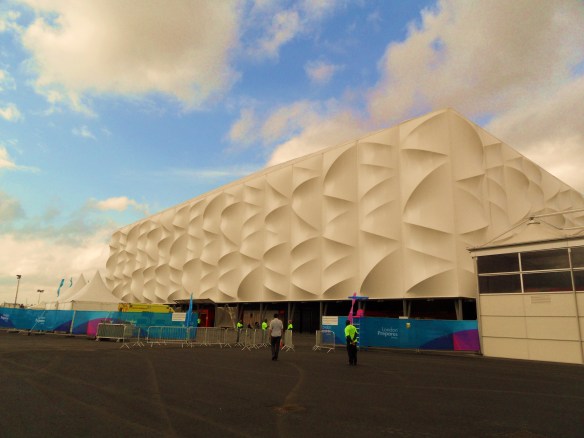 The wow factor for this event is definitely in the outside of the building, located close by “the Pringle” (the Velodrome) and just a short way from the Olympic Stadium. Inside it is rather a standard “arena” feel but it is functional and will do the job without any problems come next Summer.