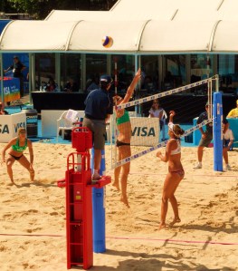 And what about the athletes themselves? Make no mistake they are bloody fit, and I mean that with a small “f” and not a big one! Legside Lizzy joined us for a while and will testify to their athletic abilities. The first match, an absolute humdinger between the Mexican and Brazilian pairs went to a third set tie breaker with just two points separating them in the opening two sets. The legendary Australians wiped the floor with the oh-so-lovely Spanish girls and the Chinese were simply blooming tall.