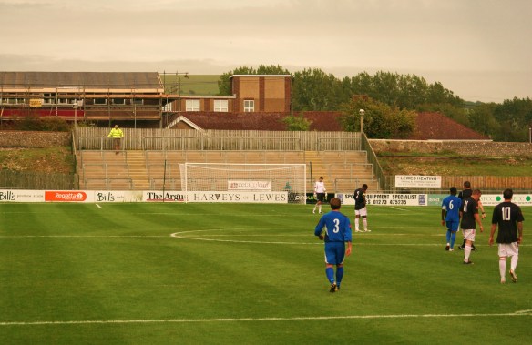 A couple of policemen had come by the house with my number plates earlier on, found in a road nearby TBIR Towers. As the bus passed the spot where I had left my car I did a double take. There sitting all alone was my car, sans plates. So my car hadn’t been stolen. But according to the police it had; Do you realise how difficult it is to “unreport” a crime? Unfortunately the number plates had already been sent to be “forensicated” (Apparently a word made up by the Met Police) and so the car was out of action. So I persuaded Mr Fuller senior to accompany me down the road to Lewes for the visit of Aveley.