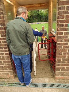 “I recognise these fella’s” pointing at the old turnstiles, “Unless I am most mistaken, which I rarely am, then these were from the away end at Stoke City’s Victoria Ground”. He was of course right, as he normally is. They bought the turnstiles from The Potters in 1997 and installed them shortly after. As you can see those long winter nights just fly past when we are together.
