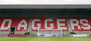 The board is held up to signify that there will be four minutes of stoppage time. Normally, with a narrow deficit, there will be a roar of encouragement from the losing supporters, but today it just creates a murmur that there are only a few minutes before we can get back to the bar. As stoppage time ticks away without the threat of an equaliser, Scott Doe is announced as the Daggers man of the match (which must have been a fairly short list, and is quite telling given that Doe is a defender, and we’ve played over an hour of the game with a player advantage), and before the small ripple of applause has died down, he fouls James Collins in the Daggers penalty area. This not only means that the visitors get a penalty, but Doe also gets his second yellow card, to become the second dismissal of the game (and his second sending off of the season, following his red card at Crawley on October 25th). With practically the last kick of the game, Collins dispatches the penalty to make the final score 2-0.