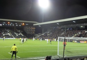 The game resumes and the first fifteen minutes don’t seem to have much of a pattern to them. Fulham appear to be happy with what they have already, and although Odense are looking a lot better on the ball, they still aren’t creating too much in the way of goal scoring opportunities. Defending the goal at the Hammersmith End, Stefan Wessels (once of Everton) looks like a lumberjack who is having a night doing something else, sporting as he does, a magnificent beard and head of hair. Being someone that is more than a bit lacking in the hair department, his mop is definitely to be admired. Alongside him is a assistant referee standing behind the end line who clearly looks very cold, with tights, gloves, and what looks suspiciously like a magic wand. Perhaps it is, as all the action seems to be happening at the other end of the ground. Either that, or Harry Potter has found a new job.