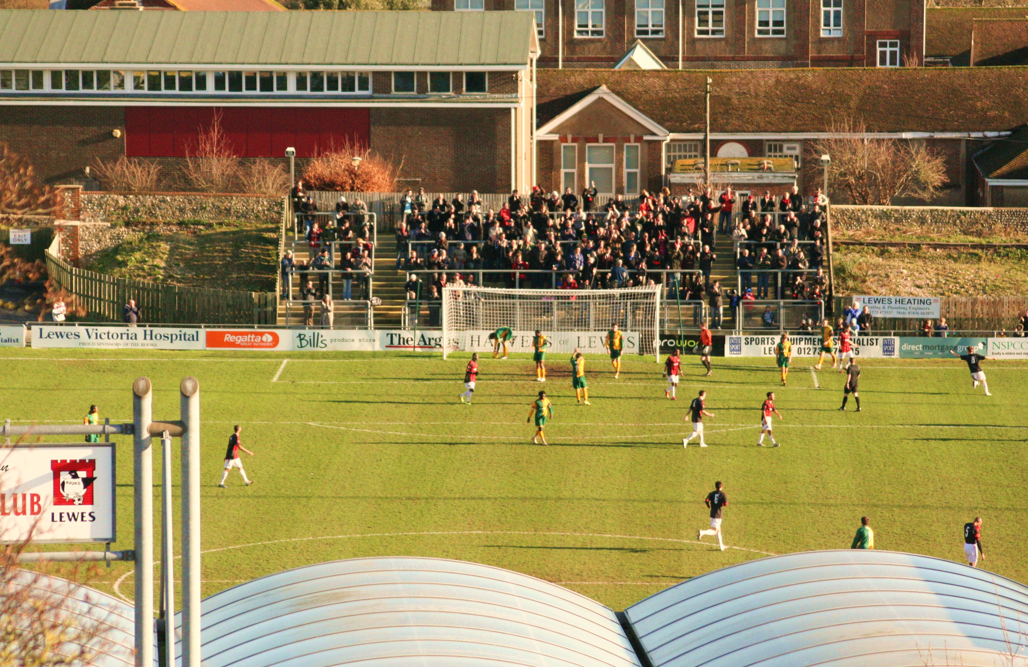 The world changed for Lewes FC in July 2011 when Brighton & Hove Albion moved into the American Express Community Stadium, located just one train stop or 4.7 miles from The Dripping Pan. We always knew that there would be an exodus of fans to the new stadium and hoped that the fixture computer would be kind to us and not arrange any major fixture clashes. The first half of the season saw just two such clashes, which had around a 20% impact on the gate. So we (the board of directors don’t you know) decided to experiment with the game on Bank Holiday Monday with Horsham when the next clash was due to take place and decreed it would be a midday kick off.