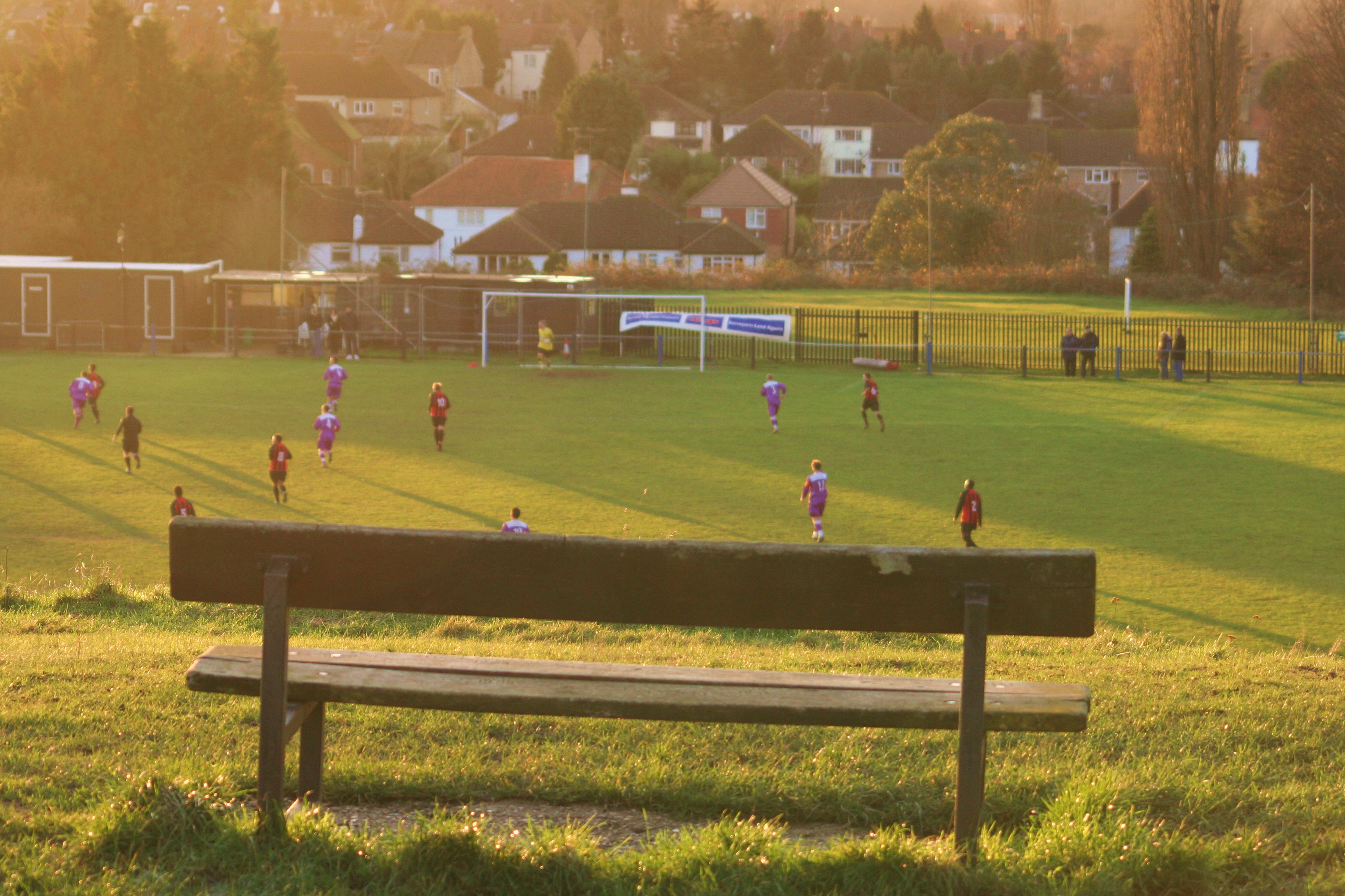 I arrived with barely a minute of the game gone thanks to a learner driver who was being allowed to drive at 10mph along the Tonbridge bypass. The car park was full, leading me to believe it was a big crowd. Alas it wasn’t. The car park also served the children’s playground, a skateboard park and numerous dog walkers. The ground sits at the base of a steep hill, which offers uninterrupted views of the game from a TV-gantry height free of charge. No wonder it was so popular with the dog walkers, who would all volunteer to take the canines out on a Saturday afternoon.