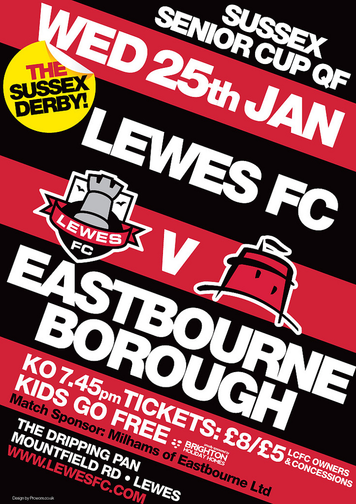 For 94 minutes this was a classic cup tie full of passion (on and off the pitch), hard tackles, goal mouth incidents and a decent atmosphere created by 637 fans. And then, the curse of the Dripping Pan struck again. Just as we had seen so many times (in fact twice already in January) we concede a late goal. Not quite a Horsham late goal, but still deep into injury time. Unlike the Horsham game this one was the knock-out box. With the game poised to enter Extra Time, Eastbourne Borough took all of the spoils and dumped Lewes on their backsides and out of the Sussex Senior Cup.